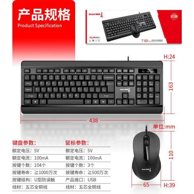 长城T10 Pro 有线键盘鼠标套装 台式机通用办公游戏商务电脑键鼠