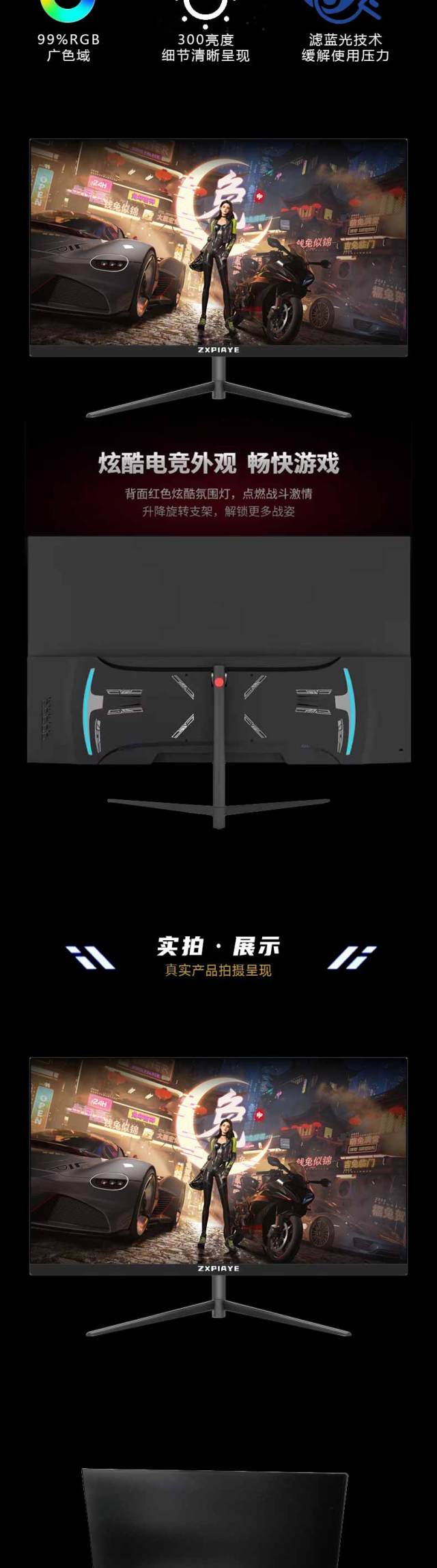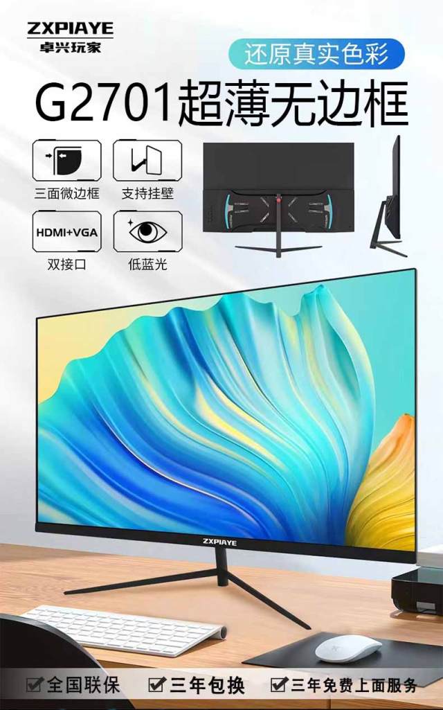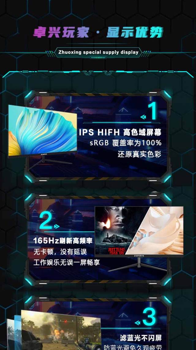 卓兴玩家 G2701 27寸1K165Hz 黑色 IPS硬屏平面显示器 带灯/V型底座 HDMI+DP