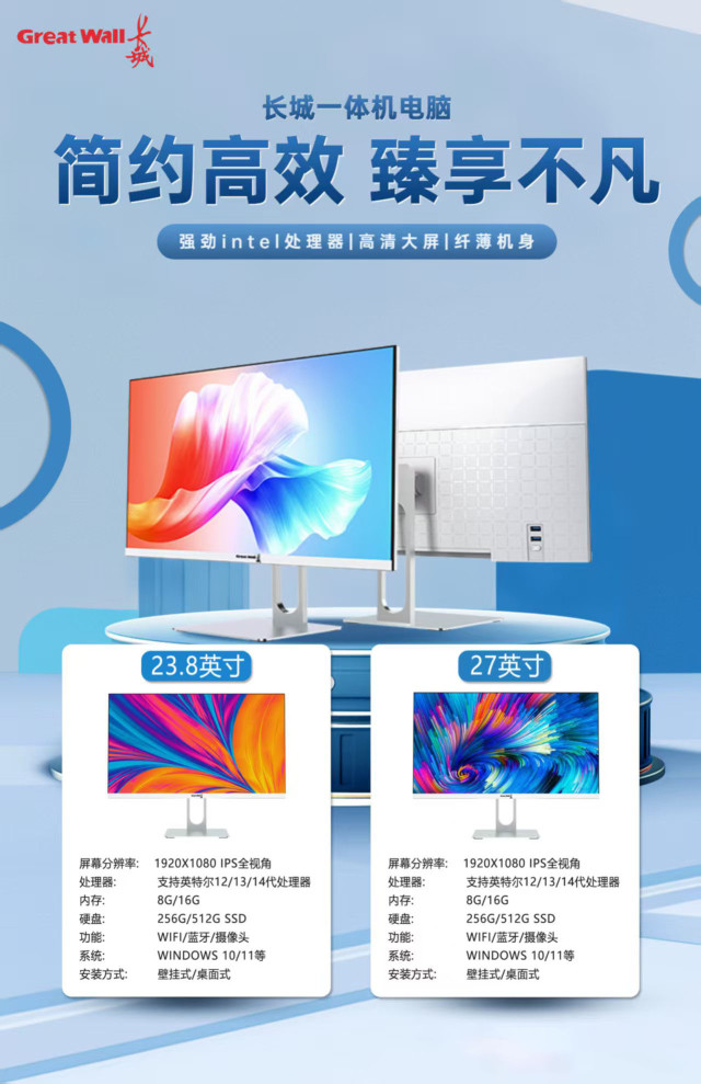 长城CH240A 23.8寸白色一体机 主板H510/兼容10/11代/DDR4/M.2+2.5寸 不包含三大件(三大件自选)