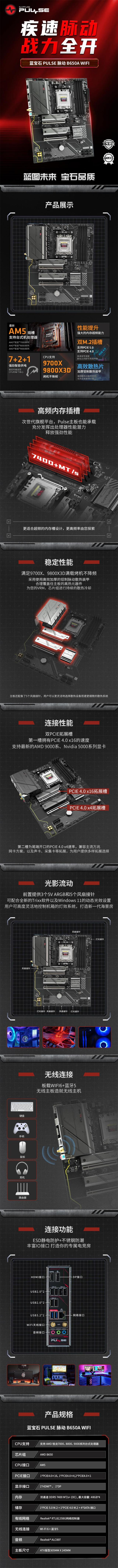 蓝宝石 脉动 PULSE B650A WIFI主板 支持AMD 锐龙9000/8000/7000系列处理器