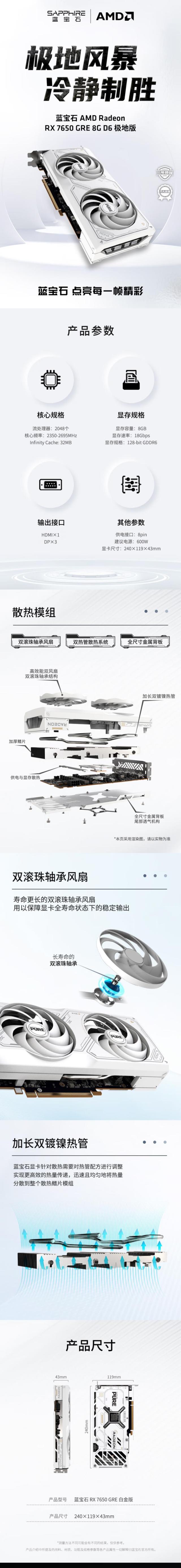 蓝宝石 RX 7650 GRE 8G极地版 黑神话悟空 台式电脑游戏显卡