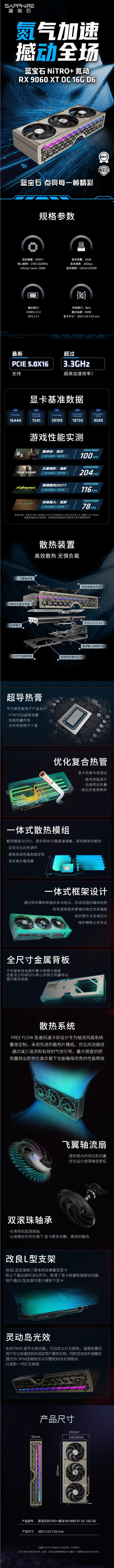 蓝宝石 氮动 RX 9060 XT 16G OC 台式机电竟显卡 游戏设计Ai渲染直播独立光追显卡