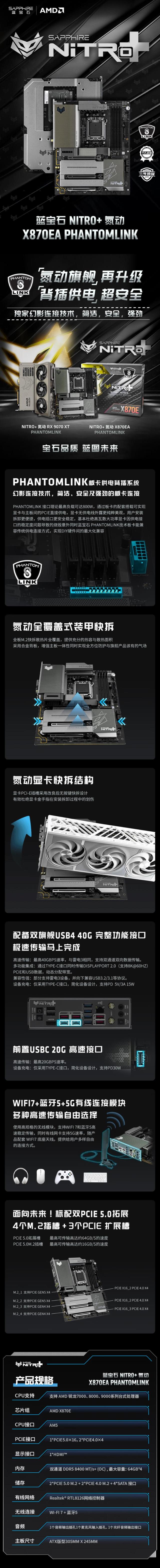蓝宝石NITRO氮动 X870EA PhantomLink 主板 支持AMD 锐龙9000/8000/7000系列处理器
