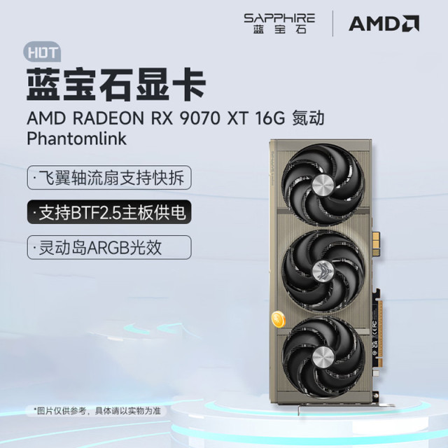 蓝宝石(Sapphire)NITRO+ 氮动 RX 9070 XT 16G D6 Phantomlink 游戏电竞背插显卡