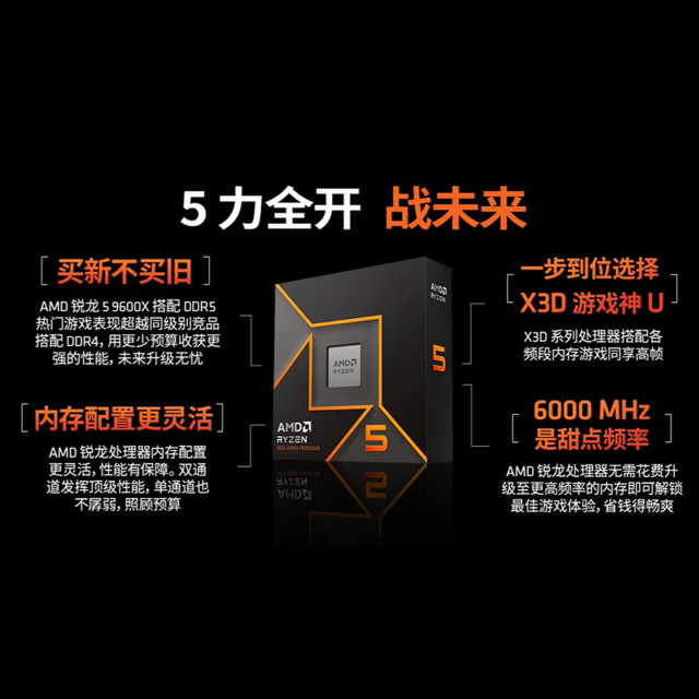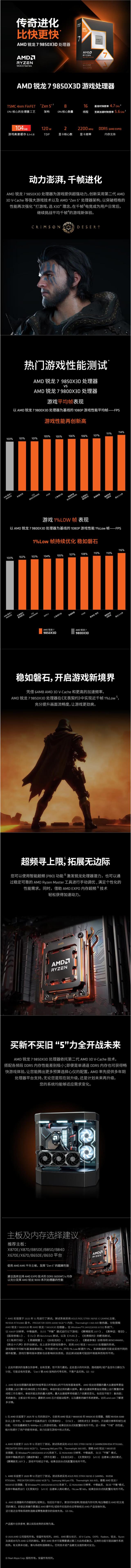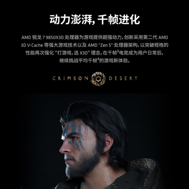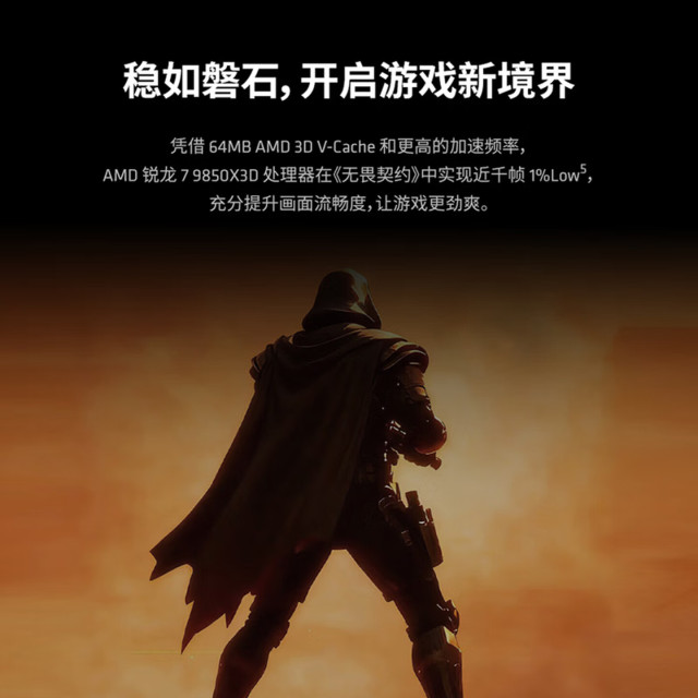 AMD锐龙7 9850X3D处理器8核16线程104MB缓存加速频率至高5.6GHz盒装CPU