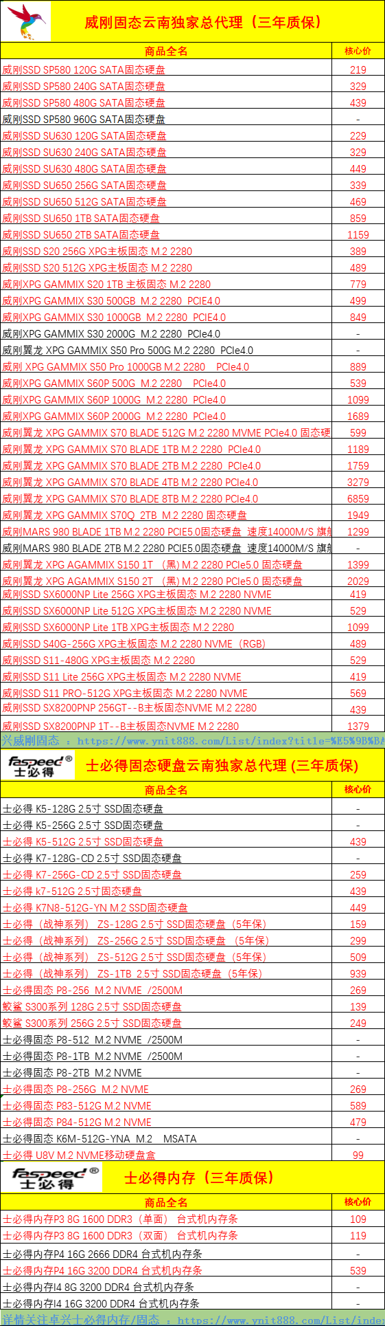 昆明卓兴电脑批发平台产品限价2025年11月27日:https://drive.weixin.qq.com/s?k=AJAA8AeoAAkiMFVz9S