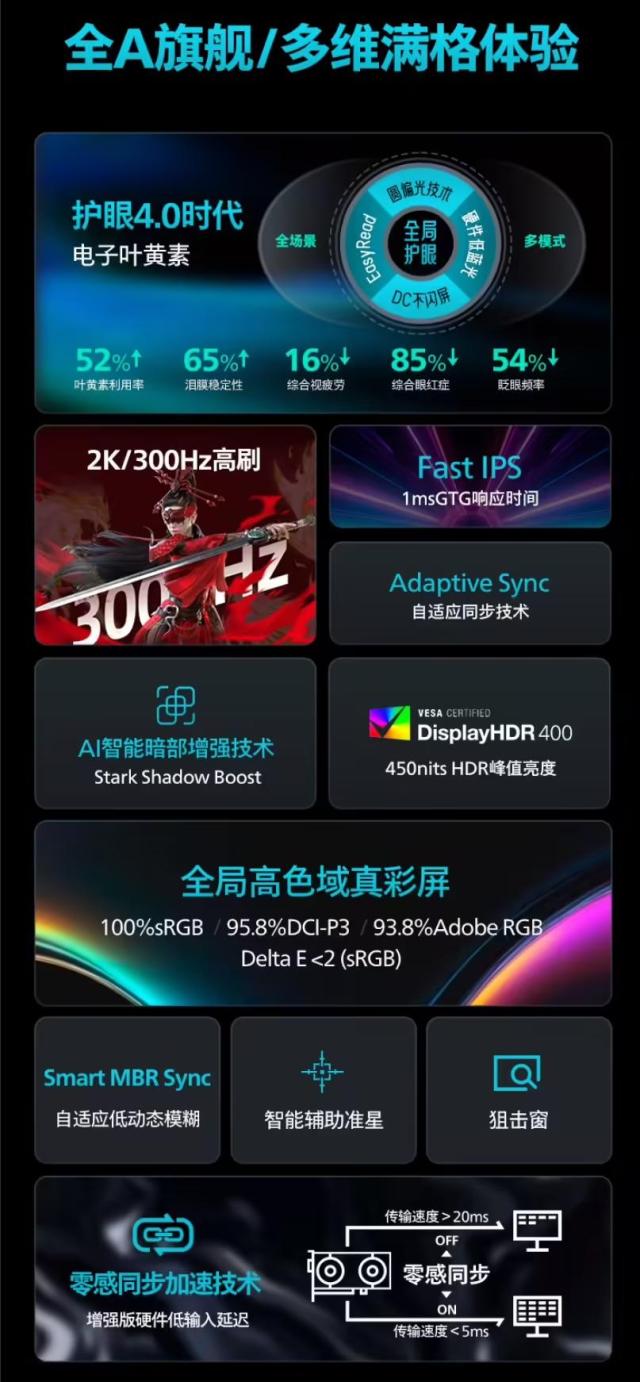 此外,该显示器支持 0.03ms 响应 Smart MBR 技术、AI 实时暗部增强,配备 DisplayPort 2.1、HDMI 2.1 FRL、USB-A 5Gbps 接口,拥有多自由度人体工学支架。