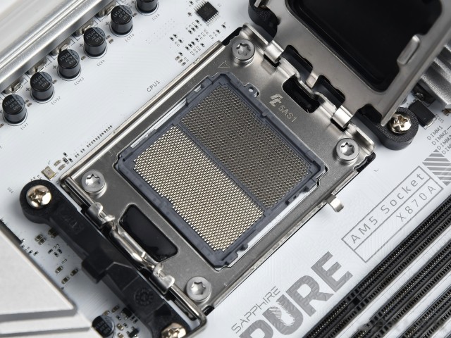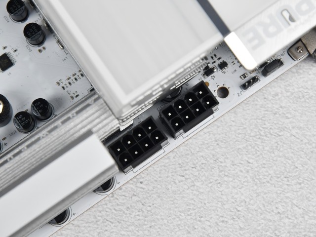 还有一个细节:这款主板的CPU供电接口是双8Pin设计,而且采用更稳定的实心针脚。双8Pin接口能输出更高的功耗,同时能分担单根线材的负载,缓解线材的散热压力,不仅更安全,也能延长线材的使用寿命。对于普通玩家来说,这种“冗余设计”能让供电更稳定,也体现了蓝宝石的用心。
