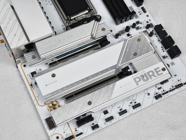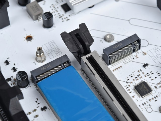 PCIe 5.0的速度比PCIe 4.0快一倍,但价格较贵。对于普通玩家来说,PCIe 4.0的速度已经完全够用了。另外,M.2 1槽(PCIe 5.0)额外提供了双面导热垫,因为PCIe 5.0 SSD在高速运行时发热更高,双面导热垫能更好地将热量导到散热装甲上,避免SSD因过热而掉速。而4个SATA接口,主要用来连接传统的机械硬盘,适合存储大量文件。
