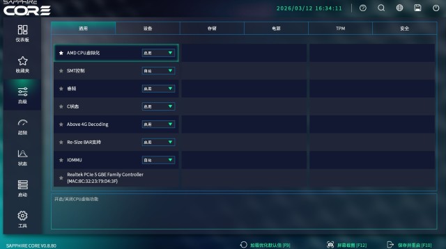 BIOS可能是很多新手玩家最头疼的地方。而蓝宝石这款主板,采用了新一代的图形化BIOS,界面简洁、逻辑清晰,操作起来非常流畅。