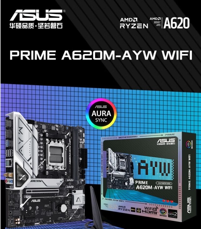 华硕(ASUS)PRIME A620M-AYW WIFI主板 CPU支持R5 7500F 7600 7700X