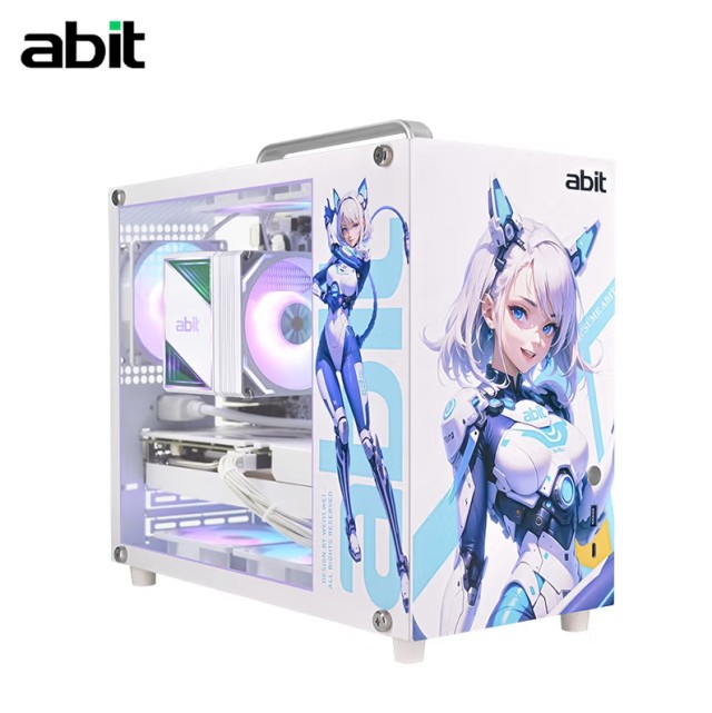 升技(abit)G88猫娘 白色 迷你时尚手提机箱 钢化玻璃侧板 皮质提手