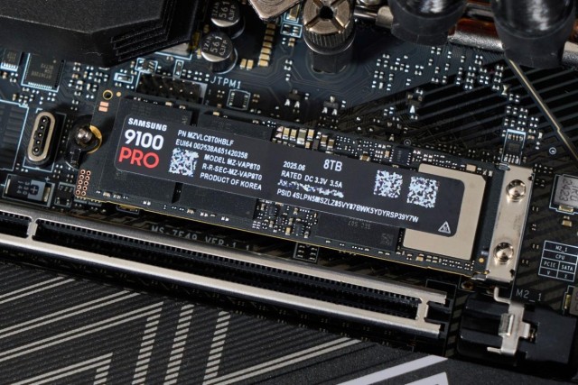 三星 9100 PRO 8TB安装兼容性完全没有问题,直接安装上去即可,背面还能与主板配备的底部散热马甲有着较好的接触,起到更好的辅助散热效果。