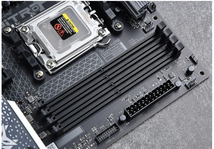 内存方面,蓝宝石NiTRO+ 氮动 B850M WIFI主板配备4组DDR5内存插槽,可以支持单条48GB,最大容量192GB,频率能够达到8000+MT/s,不过对于AM5平台还是老样子,一般内存选择6000-6400+MT/s的EXPO即可,就能让锐龙9000系列发挥大部分性能,性价比最高的搭配方式。