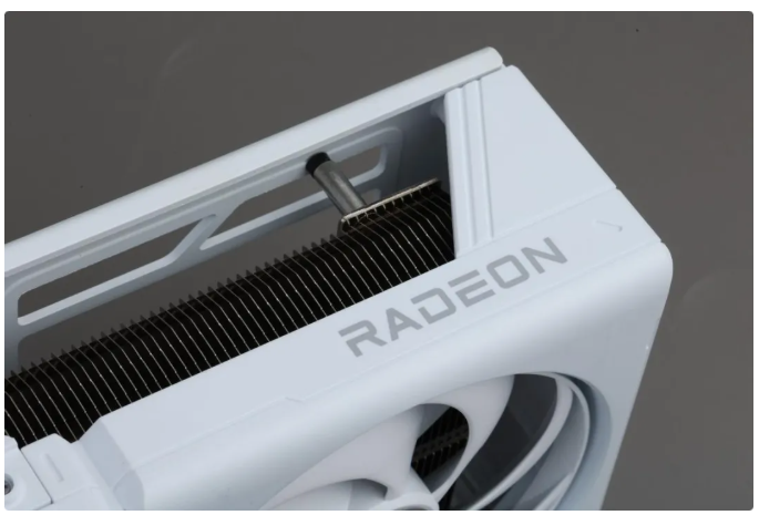 在散热设计方面,蓝宝石RX 9070 GRE极地OC显卡采用了一体式散热模组设计,这种设计能够将发热量较大的GPU、显存与MOS管无缝连接,确保热量能够快速传递和散发。散热模组中配备了5根直径6mm的优化复合热管,这些热管经过专门优化,具有出色的导热性能,能够快速将GPU产生的热量传递到散热鳍片上。热管采用了特殊的工艺制造,内部填充了高效的导热介质,能够在保证高效散热的同时,还具备较长的使用寿命,有效节约了后期维护成本。