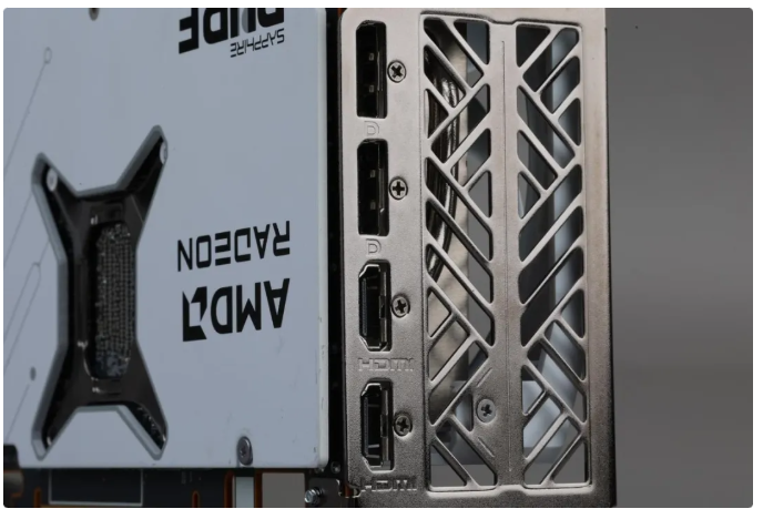 ▲在接口方面,蓝宝石RX 9070 GRE极地OC显卡为 3 槽设计,配备了2个HDMI 2.1b和2个DP 2.1a接口。